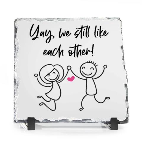 Prints a design on stone and make a funny stone slate. A cool way to display humorous and romantic images, this stone slate is an original gift idea.